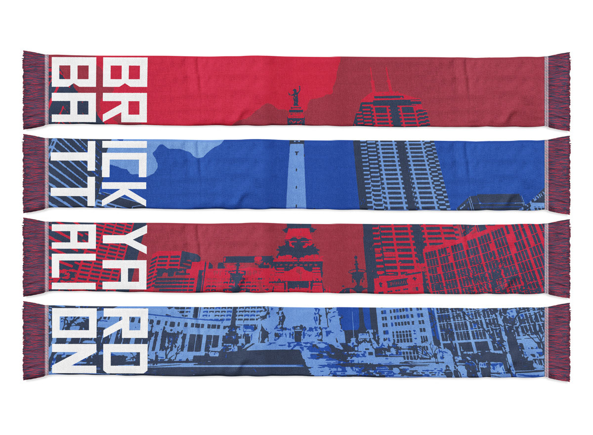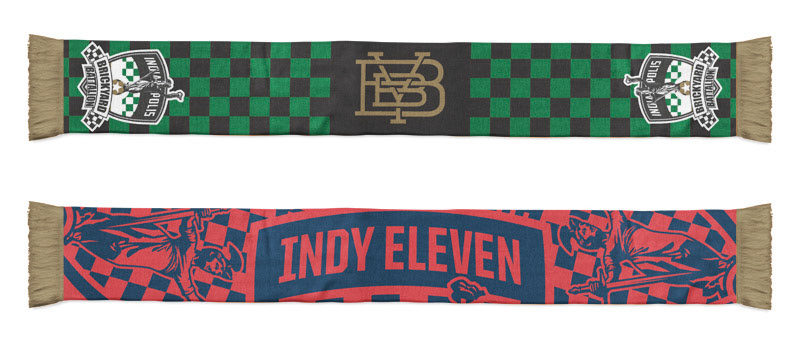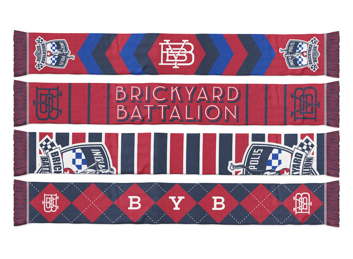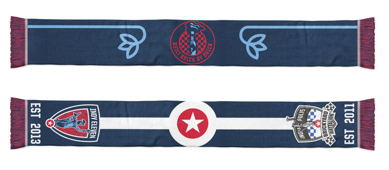 Since designing the identity for the Indy Eleven, I’ve designed a variety of scarves for the team and its two main supporter groups The Brickyard Battalion and Slaughterhouse-19.