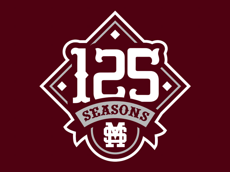 This mark was an alternate concept for Mississippi State Baseball’s 125th Season. It used the iconic "Mississippi State" baseball wordmark font for the "125," and hat logo set in a baseball diamond holding shape.