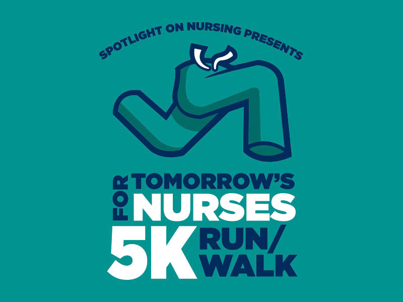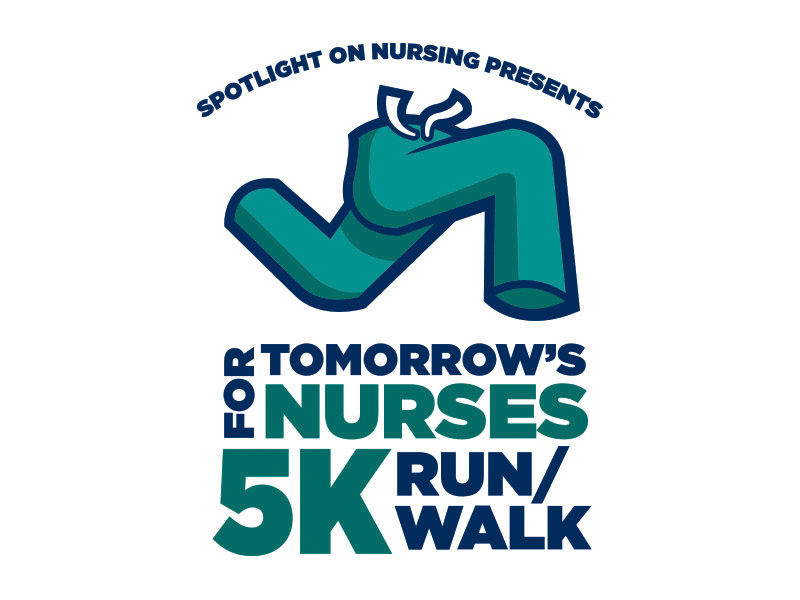 This 5k logo was created for Compton Strategies who was working with Spotlight on Nursing to put on a fundraising event. The logo features a running pair of scrubs and the main color of traditional scrub green.